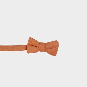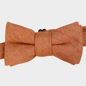 The Robbie Boy Bow Tie is an orange textured tie. 4” wide with an adjustable neck strap.